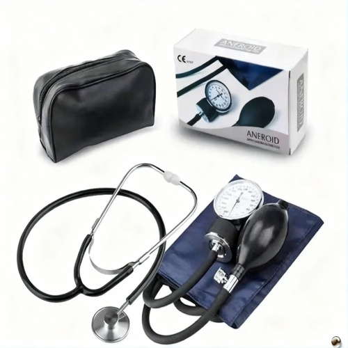 This home-use upper arm manual blood pressure monitor features a double-tube, double-head design and comes with a high-quality stethoscope, allowing for real-time monitoring of pulse sounds to help accurately measure systolic and diastolic blood pressure.
