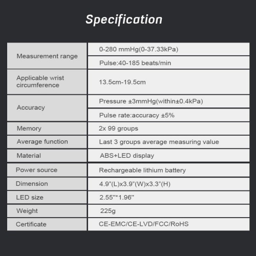 This advanced wrist blood pressure monitor features medical-grade accuracy and is specifically designed for precise home health monitoring. Lightweight and fully automated, it combines high-precision sensor technology with an intelligent inflation system to quickly and reliably measure and display blood pressure and heart rate data.